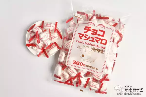 そんな同社の「徳用」シリーズ『360gチョコマシュマロ徳用袋(個包装)』(目安個数80個・オープン価格・発売中)は、商品力のみで勝負する。