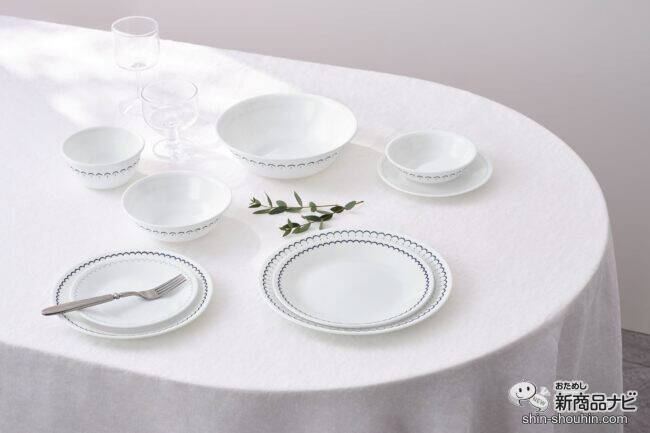割れにくい食器として人気の高い「コレール」から、新シリーズが登場。白を基調にネイビーのディテール、すっきりとしたデザインが魅力の、日常にもとっても使いやすそうな『カスピアンレース』をご紹介!