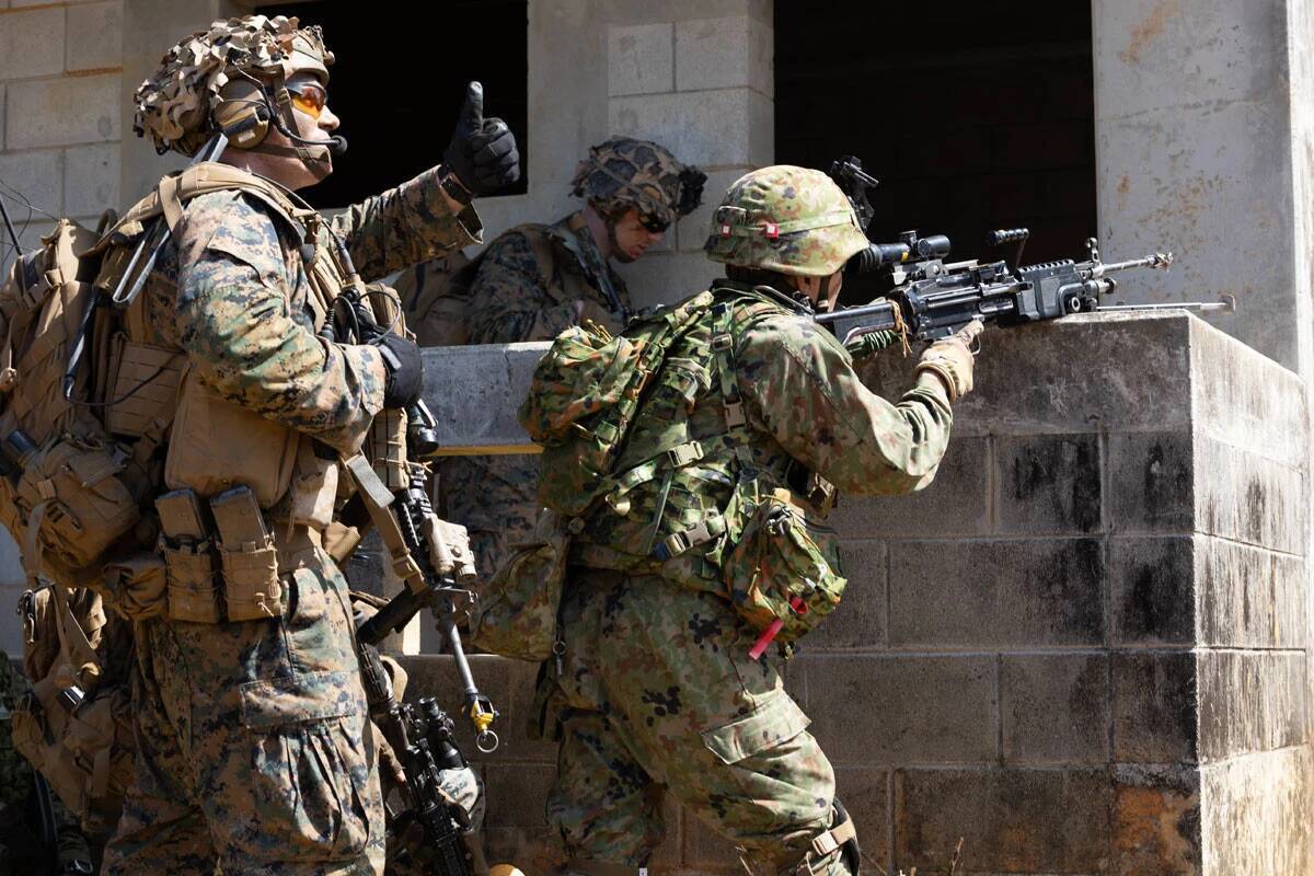 米海兵連隊には、陸自水機団が随伴する。日米混在が対中国への抑止力となる(写真・米海兵隊)