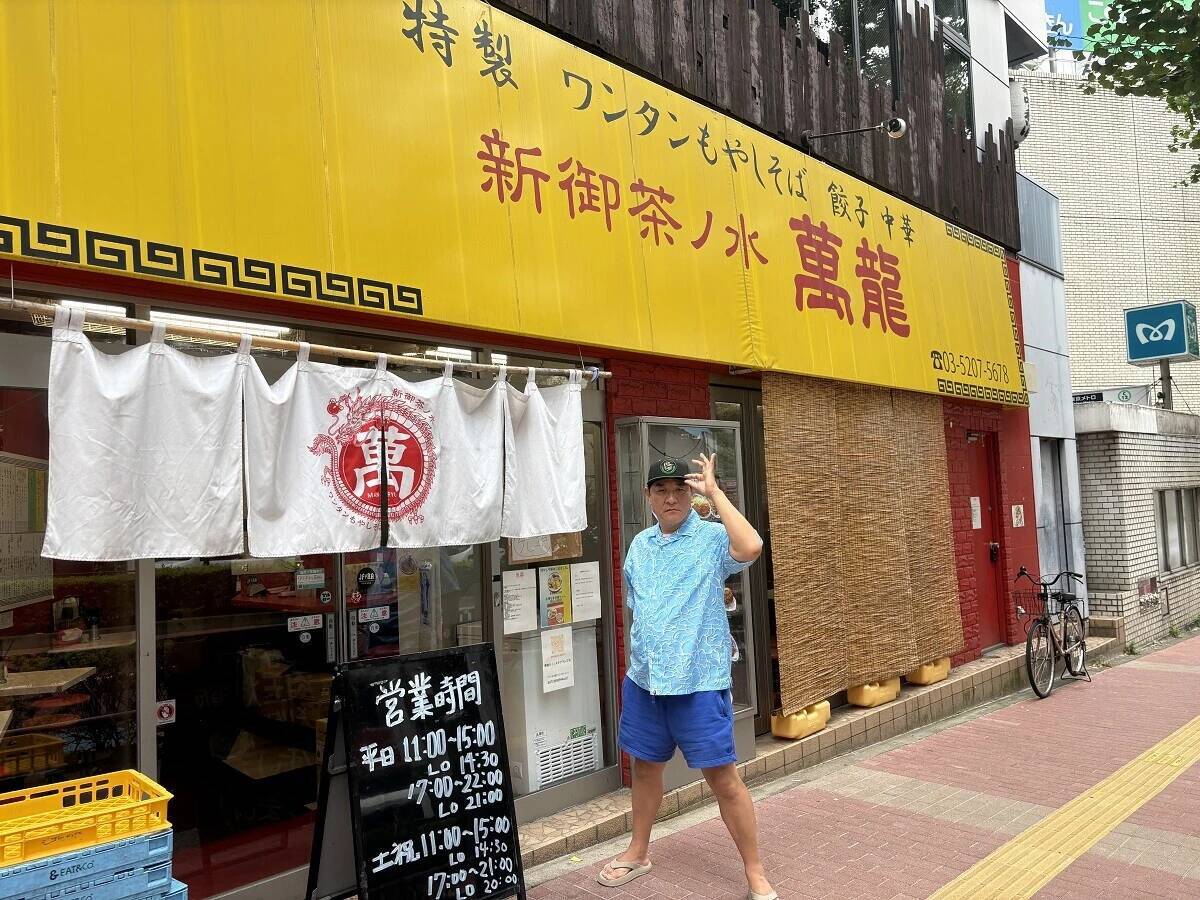 ――普通は「ワンタンメン」と「もやしソバ」が別メニューですもんね。あ、ここです。「萬龍」さん。