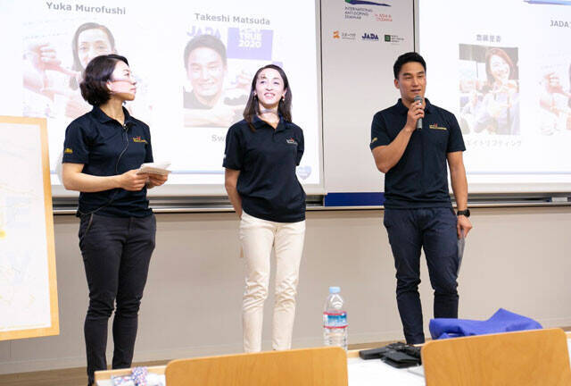 JADA(日本アンチ・ドーピング機構)のアスリート委員会には、競技も年齢も異なる様々なアスリートが名を連ね、クリーンで公正なスポーツを守るために活動しています。こちらはウエイトリフティングの斎藤里香さん(写真左)、陸上の室伏由佳さん(写真中央)と「アジア・オセアニア国際アンチ・ドーピングセミナー2018」でご一緒した時の様子。