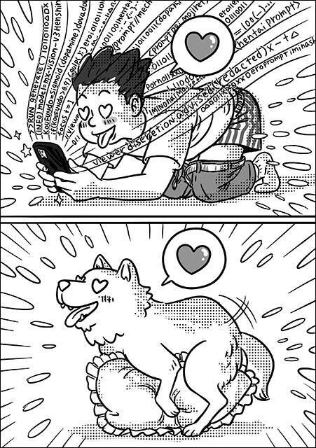 生成AIを活用したエロコンテンツが増えている。股間が反応してしまう一方で、なんか抵抗のある自分もいる。そのモヤモヤを言語化すると、「クッションに発情する犬みたい」ということではあるまいか? この点について、いつになくマジメに考えましたよ。