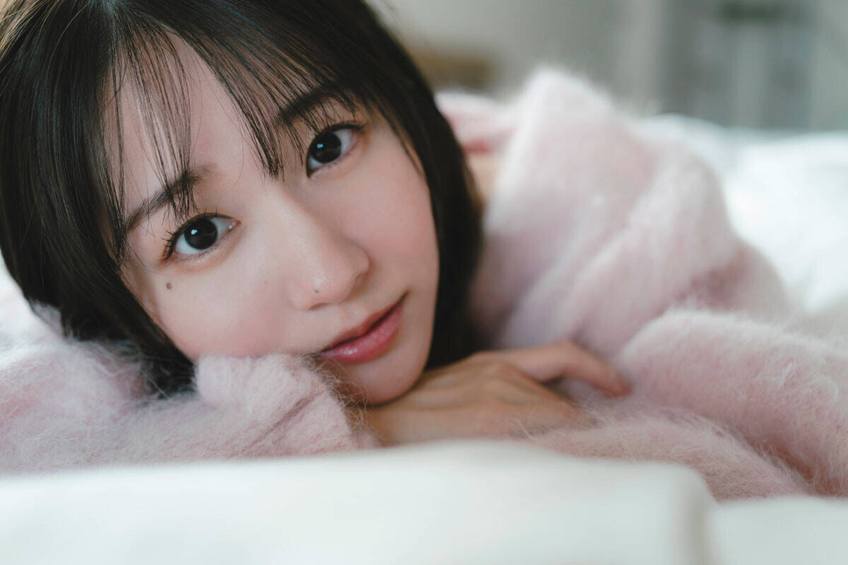 ──その白いワンピースでは部屋とプールサイドで撮影したり、ゆるふわな部屋着を着てベッドの上でゴロゴロしたり、浴衣を来てリラックスしたり、熱海の街を散策したり。バーのシーンでは、グッと大人の女性を感じさせる表情も見せていますが、特に印象深いカットは?