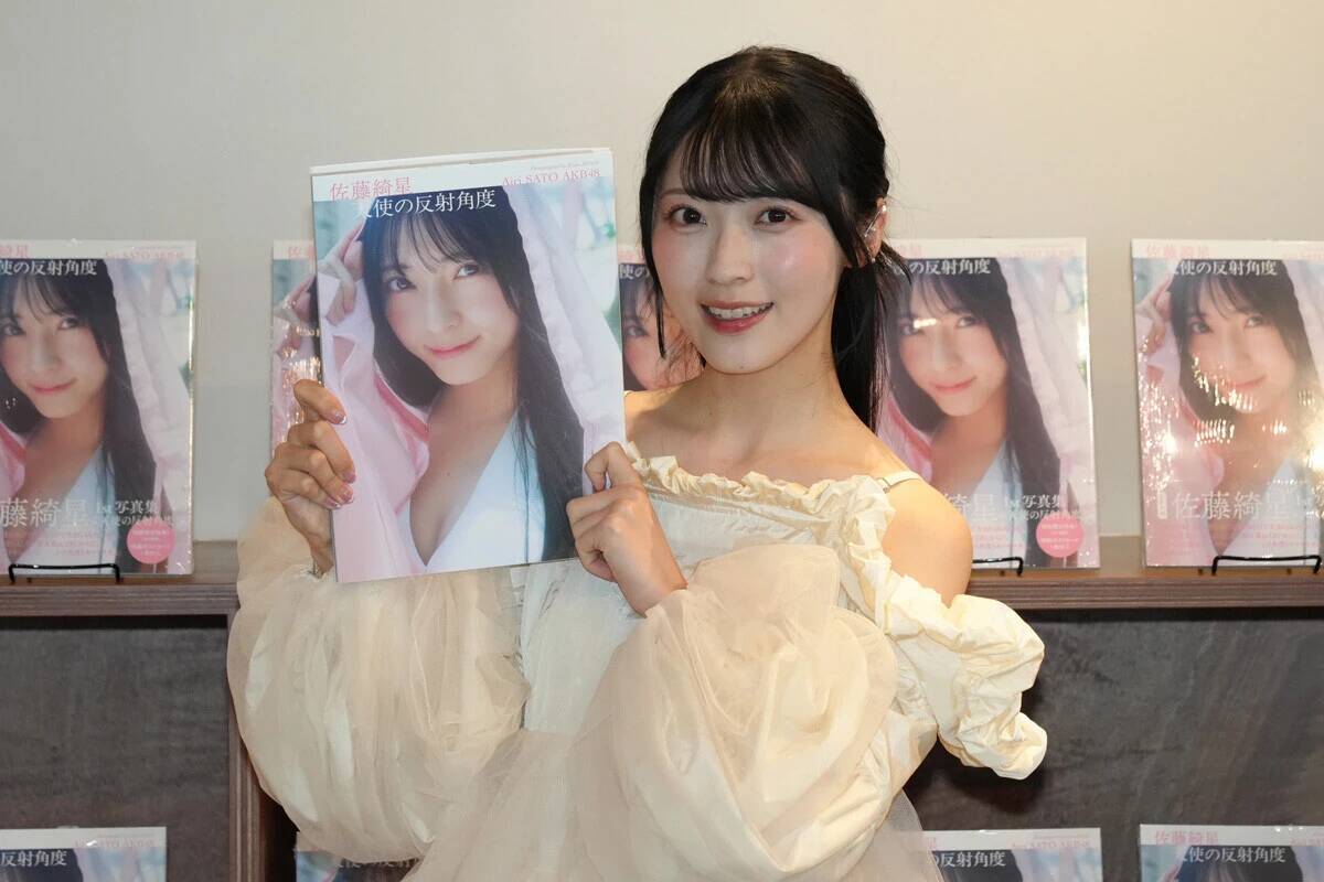 AKB48の次世代エース佐藤綺星(さとう・あいり)がファースト写真集『天使の反射角度』を発売! それを記念して2月1日(日)に都内でお渡し会と記者会見が行われた。
