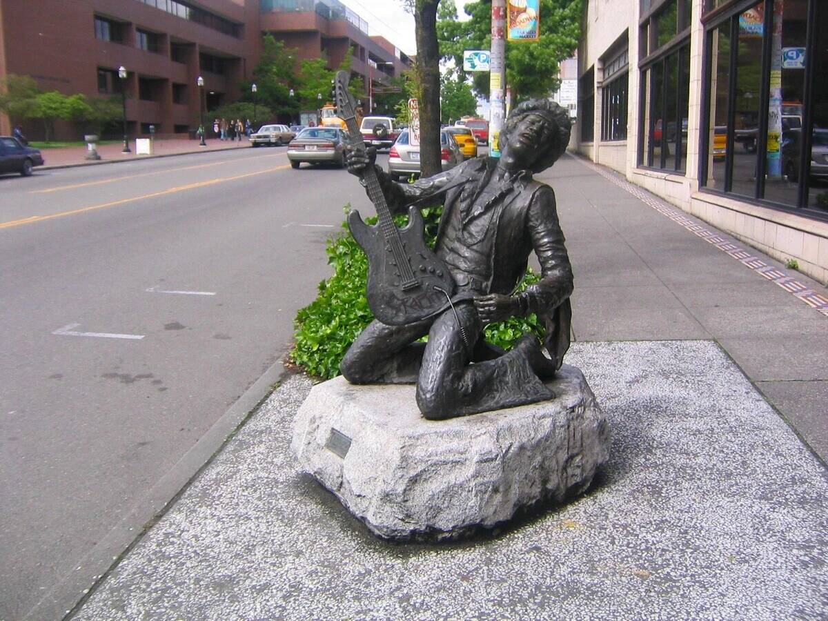 アメリカ・ワシントン州シアトルのヒップな地区「キャピトル・ヒル」にあるジミ・ヘンドリックス像。ギターの神様ジミヘンはシアトル出身。