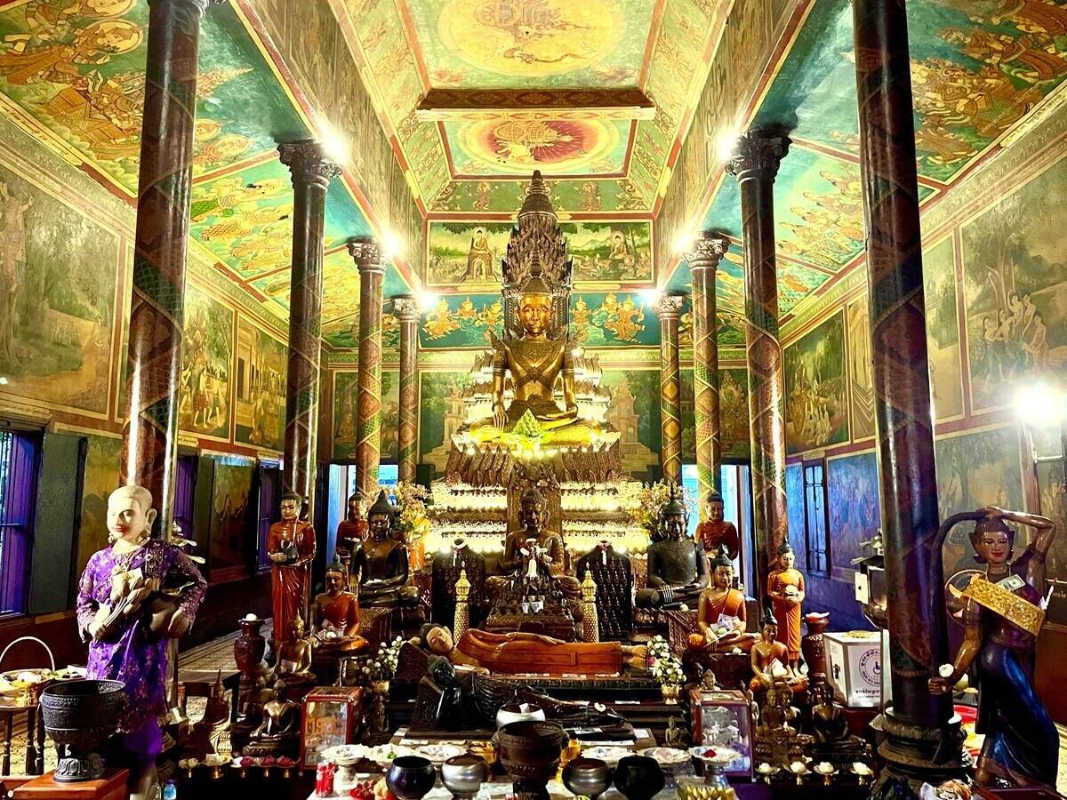 多数のコウモリの生息地としても有名な、プノンペンの観光名所「ワット・プノン」の内部。