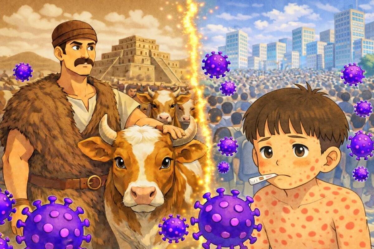 そのような時代背景の中、ウシという家畜で蔓延していた牛疫ウイルスが、人間社会に「侵入」を始める。人間社会が都市化することによって、「密」という環境が生まれたからだ。