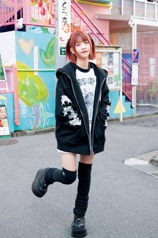 そう話すのは、原宿のアパレルショップ店員兼モデルのコモレビヨリさん。ハーフツインの髪形と、手が隠れる“萌え袖”で口元を隠しながらニコッと笑う姿は20代女子にしか見えないが、なんと40歳!