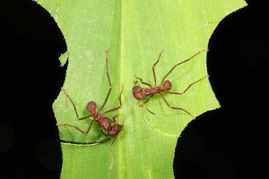 ハキリアリが好む(というか、キノコが好む)葉っぱは、日本では決まっている。スイバやギシギシといったシュウ酸たっぷりの植物が今のところいちばん好きだ。以前、行なった実験ではクリがいちばん好きだった。一方で嫌いな植物はサクラとツツジ。サクラの葉に含まれる芳香成分(桜餅のあのにおいのもと)である「クマリン」、ツツジに入っている「ベンツアルデヒド」が嫌いなようだ。