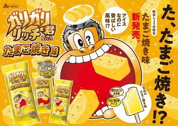 アイスは、たまご焼き味アイスキャンディーの中に、味つきたまご入りのたまご焼きカキ氷が入ったもので、アイスの味つけに粉末のしょうゆも配合し、焼成感のある香りをプラスすることで、焼いたたまごの風味も演出している。中のたまご焼き味のカキ氷には乾燥たまごを混合。種類別はラクトアイス、100ml、税別140円。