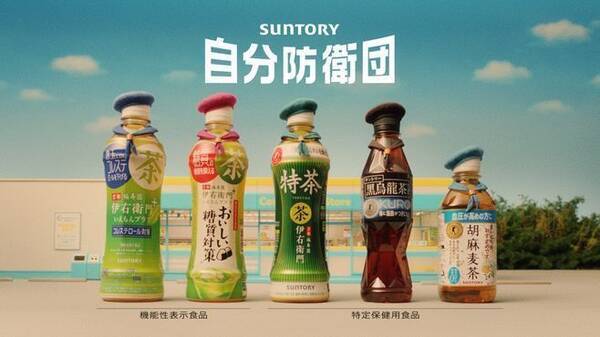 サントリー食品インターナショナルは、無糖茶の特定保健用食品・機能性表示食品カテゴリー初となる統合コミュニケーションを実施する。11月16日から「健康茶統合」新TV-CM「自分防衛団の歌」篇、「胡麻麦茶」新TV-CM「青空測定」篇、「伊右衛門プラス コレステロール対策」新TV-CM「滑り台検証」篇を全国で放映する。