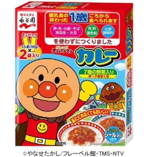 永谷園の「それいけ!アンパンマン」シリーズは、人気キャラクター「アンパンマン」を起用した、小さな子ども向けの商品。1994年に最初の商品を発売して以来、長年にわたって販売している。現在、カレーのほかにも「ミニパック野菜 あんけかけ丼」「お茶づけ」「まぜこみごはんの素 鮭わかめ」など、合計8種類が食物アレルギー配慮商品となっている。