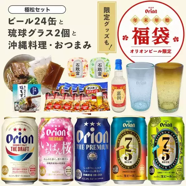 「オリオンビール“沖縄福袋2022-23”予約販売スタート、「75BEER」「オリオン ザ・プレミアム」や限定グッズ「琉球ガラスのビアタンブラー」「石敢當コースター」などセットに」の画像1 「オリオンビール“沖縄福袋2022-23”予約販売スタート、「75BEER」「オリオン ザ・プレミアム」や限定グッズ「琉球ガラスのビアタンブラー」「石敢當コースター」などセットに」の画像2 「オリオンビール“沖縄福袋2022-23”予約販売スタート、「75BEER」「オリオン ザ・プレミアム」や限定グッズ「琉球ガラスのビアタンブラー」「石敢當コースター」などセットに」の画像3 「オリオンビール“沖縄福袋2022-23”予約販売スタート、「75BEER」「オリオン ザ・プレミアム」や限定グッズ「琉球ガラスのビアタンブラー」「石敢當コースター」などセットに」の画像4