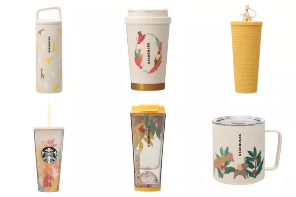 「スタバ2023“サマーシーズン”グッズ第1弾、カラフルなフルーツ&動物のボトル・マグカップ、サバンナをイメージしたオンライン限定商品も/スターバックス」の画像