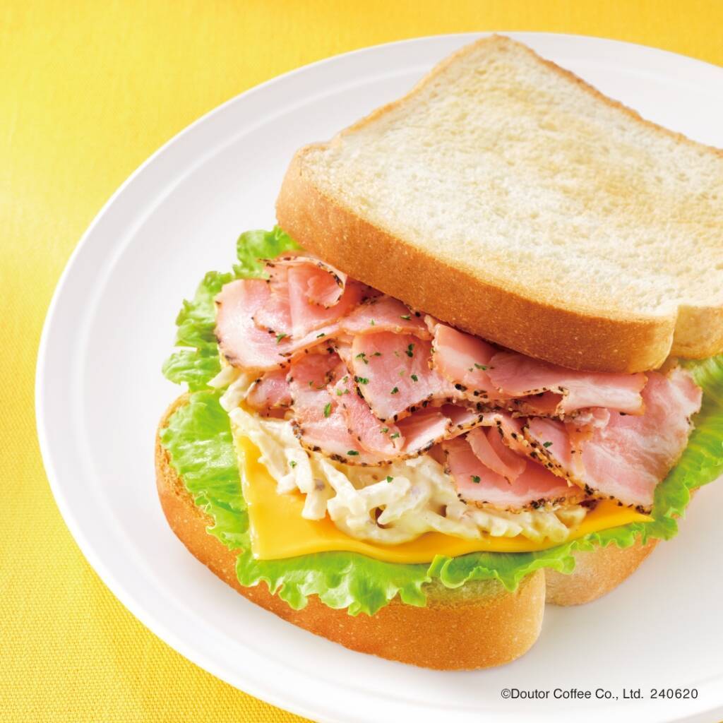 ドトールの「モーニング・セット」は、午前10時30分までの販売。セットドリンクは、すべてのドリンクが対象となり、税込合計額から50円引きとなる。記載の価格は「ブレンドコーヒーS」または「アイスコーヒーS」を選んだ場合。「モーニング・セット」のサンドイッチは、単品では販売しない。