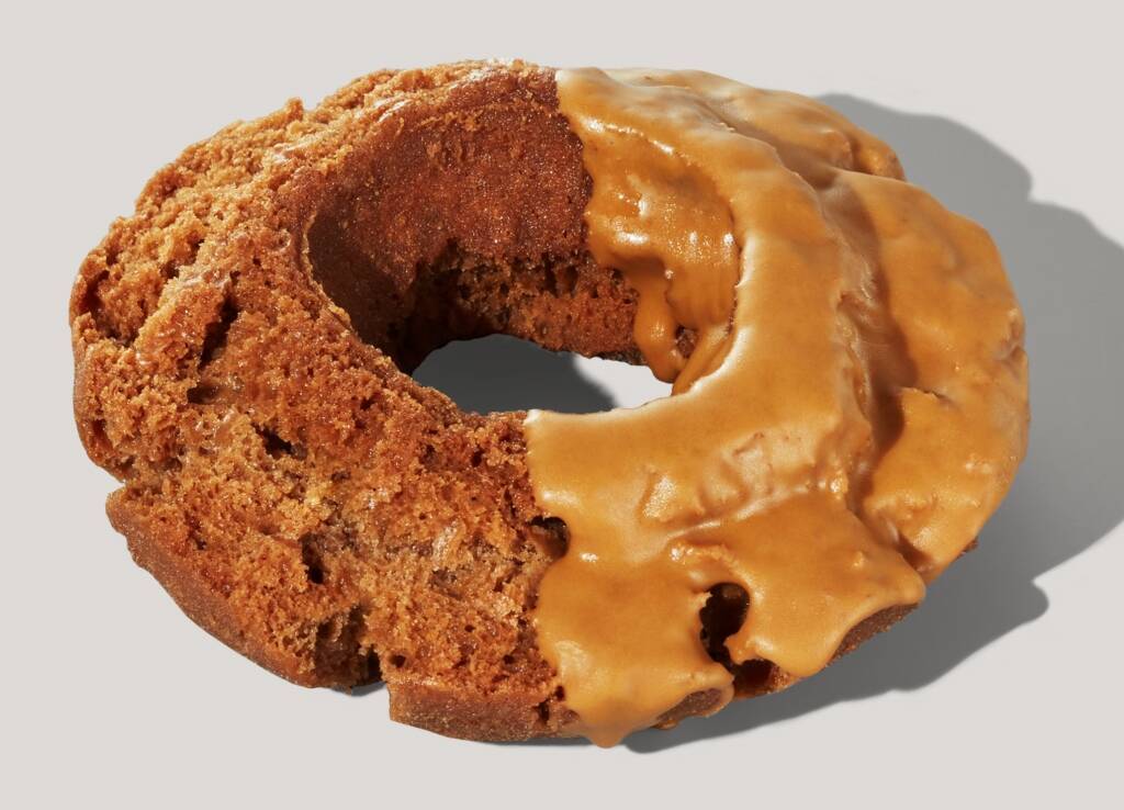 花が開くように大きく割れた外観とキャラメル風味が特徴のドーナツ。外はさっくり、中はしっとりとした食感を楽しめるという。