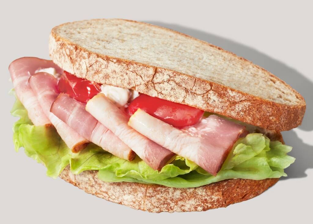 スモークを効かせたベーコンが主役の定番サンドイッチ。レタスとセミドライトマト、酸味と塩味のバランスにこだわったサワークリームと一緒にパンで挟んでいる。