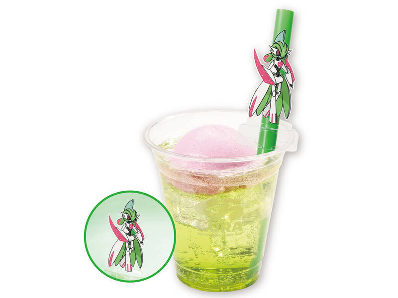 「テツノジブン」のカラーである緑とピンクをメロンソーダとピーチシャーベットで表現したドリンク。ストローに付属する「テツノジブン」のストローチャームは、組み立てることでクリアスタンドとして楽しむこともできる。