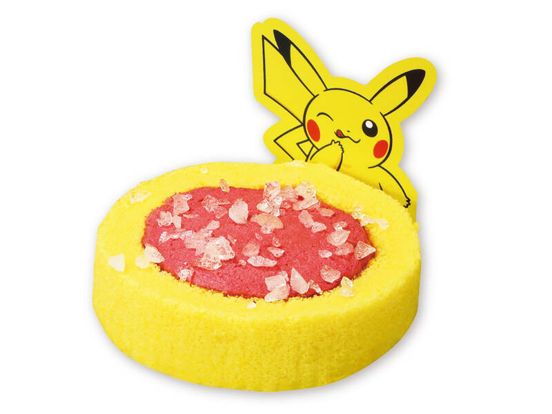 ピカチュウの赤いほっぺを表現したイチゴクリームを、ピカチュウのカラーをイメージした黄色いロール生地で包んだスイーツ。