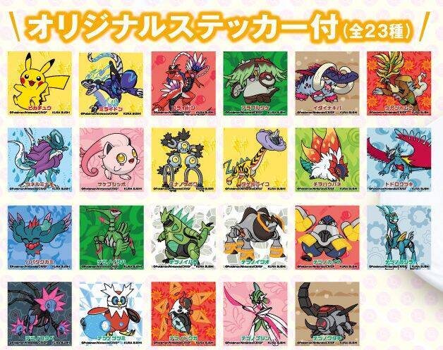 配布グッズのうちクリアファイル・マルチシートのデザインは、「ピカチュウ」「コライドン&ミライドン」「こらいのすがたのパラドックスポケモン」「みらいのすがたのパラドックスポケモン」。アクリルスタンドのデザインは、「ピカチュウ」「コライドン」「ミライドン」「トドロクツキ&テツノブジン」。