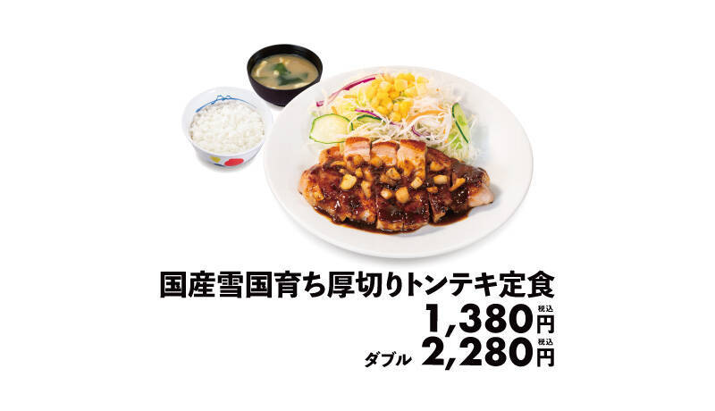 松屋は、日本ハムとコラボした新メニュー「国産雪国育ち厚切りトンテキ定食」を、6月24日10時から全国の松屋(一部店舗を除く)で販売する。