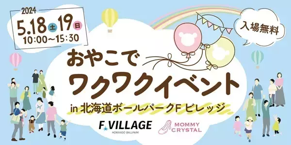 マミー・クリスタルが展開する全国の商業施設やスポーツ施設を舞台とする「おやこでワクワクイベント」を、同社はファイターズスポーツ&エンターテイメントと共催で、5月18日(土)・19日(日)の各日10:00~15:30に北海道ボールパークFビレッジにて開催する。