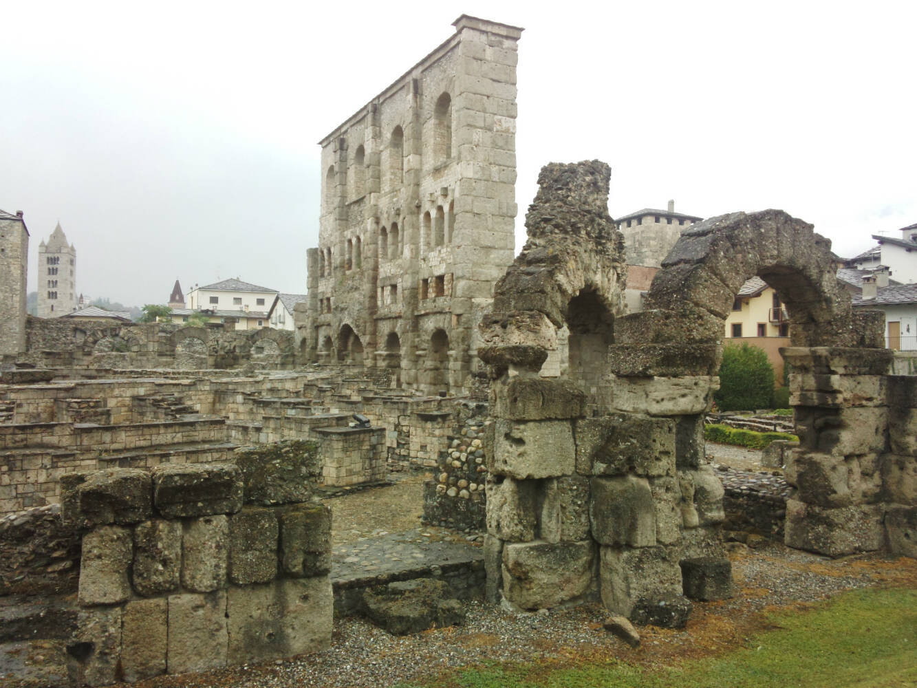 アオスタに着いて、まずはインフォメーションセンターへ。この時ちょうどイタリアには台風が接近していて、この日もあいにくの小雨。実はこの時点で翌日のロープウェイも半分くらい諦めていた私でした。ですが!明日ロープウェイに乗りたいこと、天気が心配なこと、帰りの電車(14:30)に間に合うか、などなど聞いてみると、「明日は午前中の天気が少し悪そうだけど午後から晴れ、時間も十分足りるからトライしてみて!」とのこと。「何とかなりそう?!」と行ってみることに決めて、その日はアオスタ観光を楽しみました。