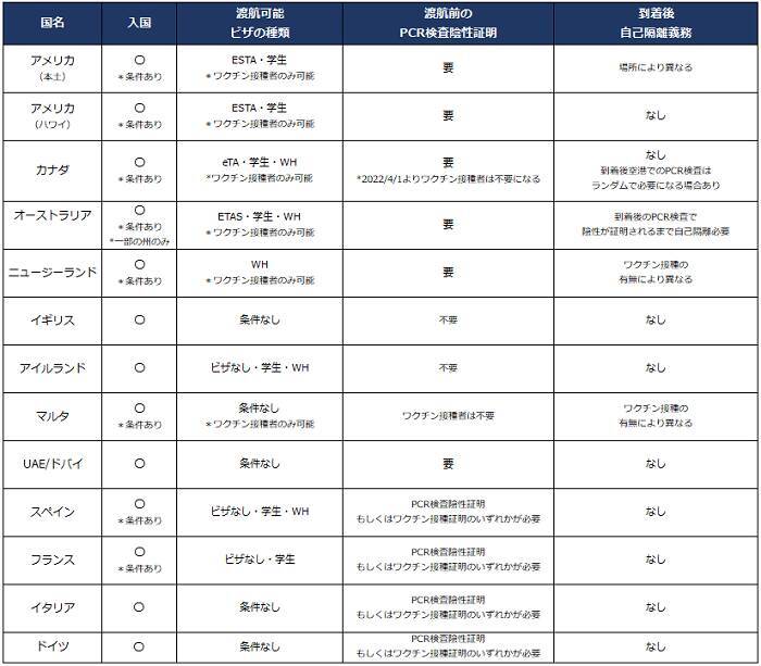 【2022/3/31現在渡航が可能な国】