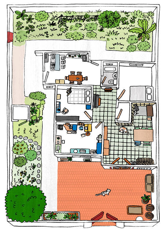 間取り中央にある寝室の下にあるのが、お二人のアトリエ(イラスト/Rosy Chang)