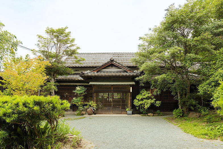 山の家に到着すると、お屋敷、といっていいような風格ある古民家が、緑の茂るなかに立っていた。山の家という名から、標高の高い場所にあるのかと想像していたが、思っていたより平地からすぐの場所にある。