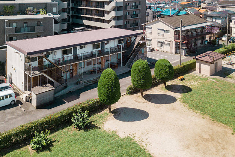 オープン後、錆びて破れた金網のフェンスを撤去してもらい、生け垣の一部を排除。それにより、建物と公園の行き来がスムーズになり、公園でくつろぐ人も増えたそう。その後、公園管理制度を使い、「つなぐば家守舎」が遊具の安全性や芝生の状態などを含めた公園の管理も行うようになったとのこと(画像提供/つなぐば家守舎)