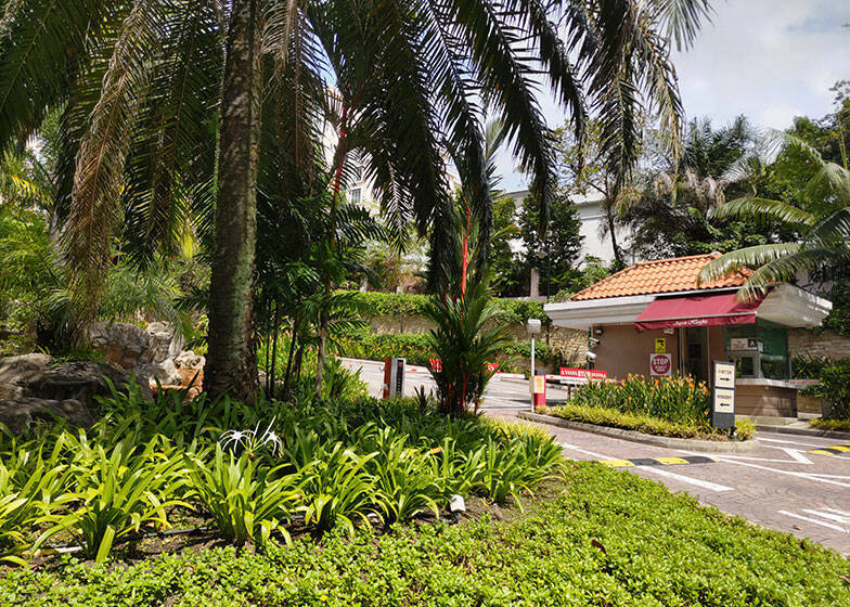 コンドミニアムの敷地の入り口にはセキュリティーガードが常駐している(写真撮影/四宮朱美)
