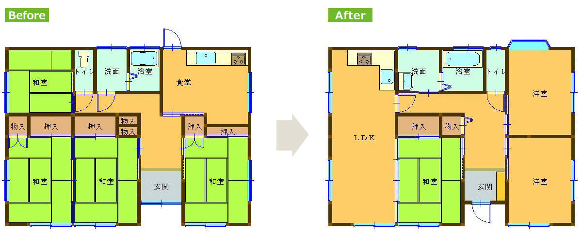 和室2室を日当たりのいいLDKへ大幅リフォーム