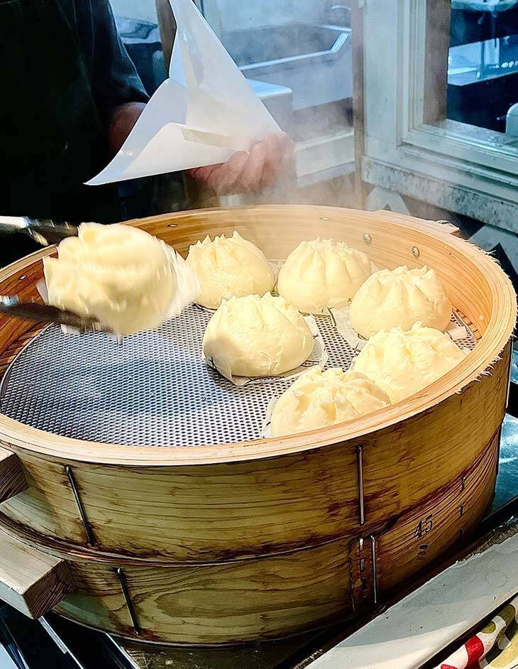 せっかくの「とろまん」、お店のように蒸篭を使って蒸すとより一層、おいしく味わえますよ。手軽に食べたい場合は、冷凍のままの「とろまん」を水に潜らせてラップでふんわりと包み、電子レンジで3、4分温めてもOKです。