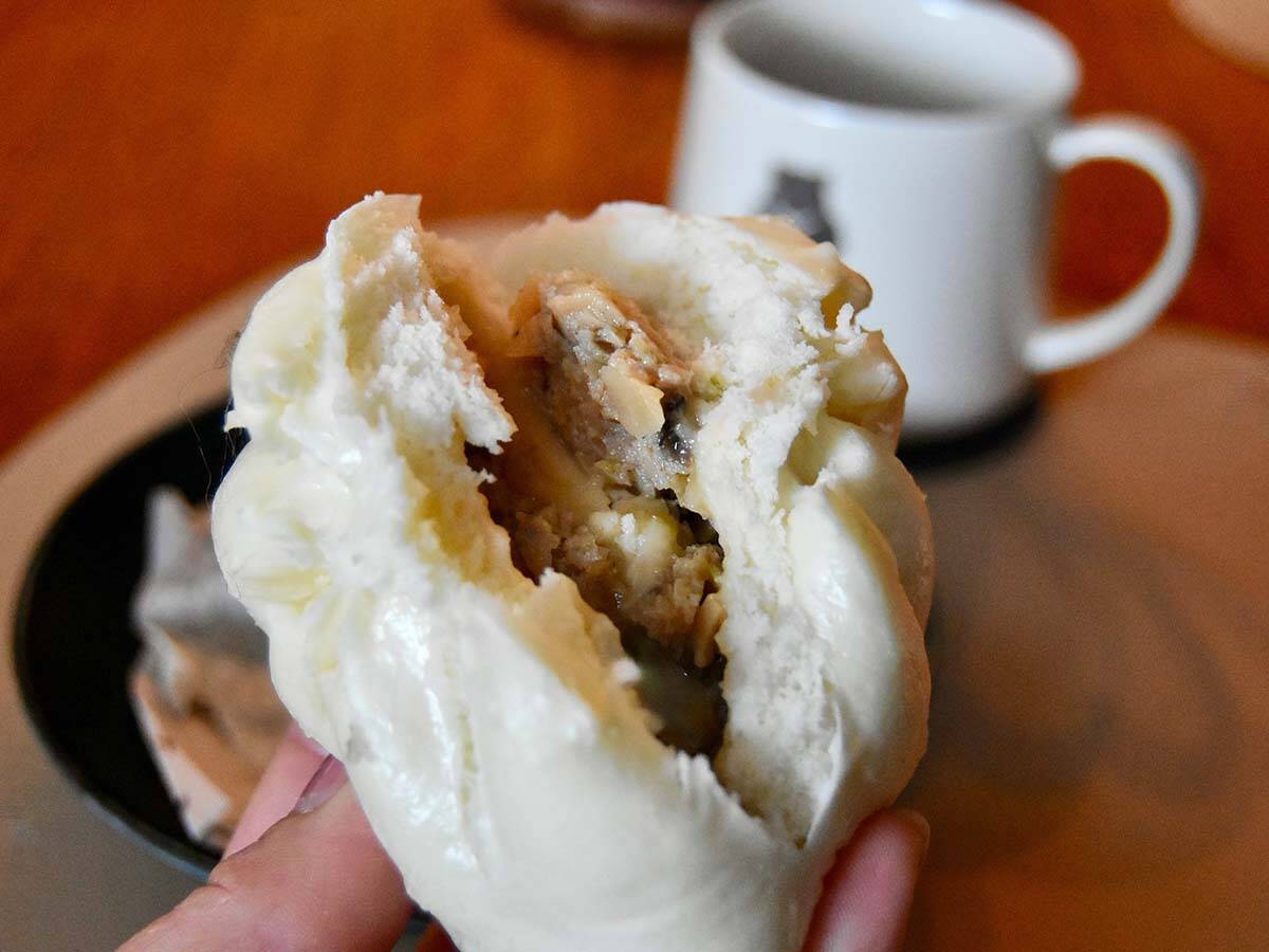 たっぷりのマグロのトロと、キャベツや玉ねぎ、椎茸、筍などの新鮮な野菜をミックスした、やや小ぶりの中華まんじゅう。パオ(包)は横浜中華街の秘伝の技で、『みさきまぐろ倶楽部』の料理人が地元流にアレンジして仕上げているそう! これは期待が高まりますね。
