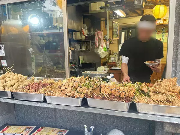 店頭に並べられた無数の焼鳥群。串モノは1本120円〜