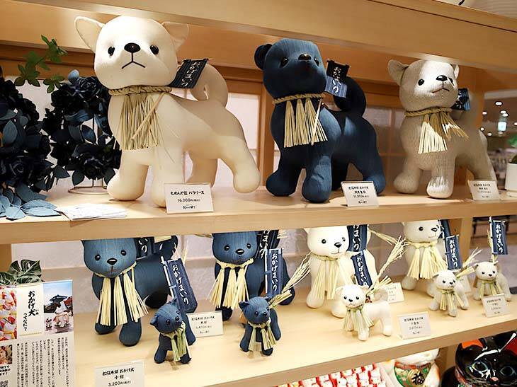 さらに気になったのがこちら。江戸時代に身体が不自由なご主人に代わってお伊勢参りを代行した「おかげ犬」をモデルにした可愛い「おかげ犬ぬいぐるみ」も販売しています。大阪なんばに出かけたら、休憩やお土産を購入するのにおすすめのお店です。