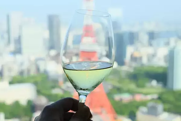 「フランス料理なのでワインに合うよう、味にメリハリを持たせることも大切にしています」。グラスの向こうに東京タワーを望む絶景も素敵