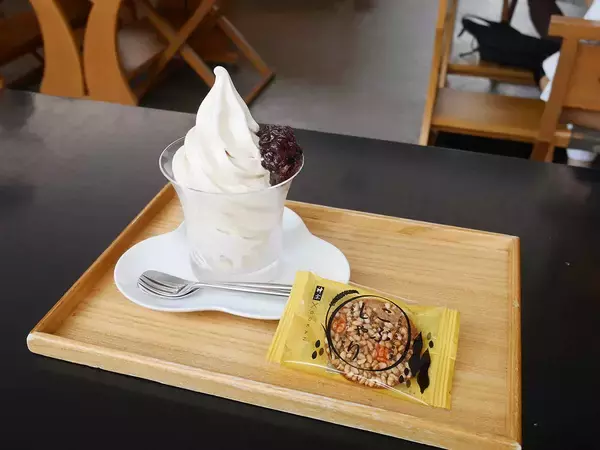 「塩昆布煮汁ソフトクリーム(五感「こぶしゃり」付)」500円