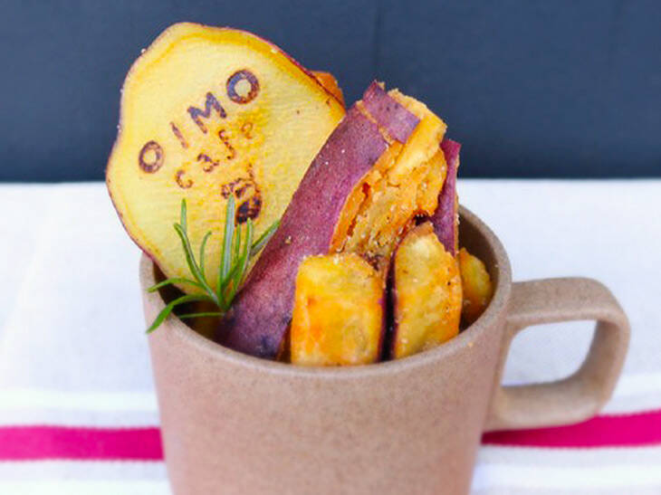 320年の歴史ある老舗さつまいも農家が営むカフェ『OIMO cafe』からは、ホクホク感がたまらない「焼き芋のフライドポテト」が登場。一度じっくりと焼き上げた焼き芋を、外側がカリカリになるまで揚げた一品です。お芋本来の味、甘み、旨みを存分に引き出した香ばしさたまりません! 食べだしたら止まらない、おつまみ感覚で楽しめる芋スイーツです。