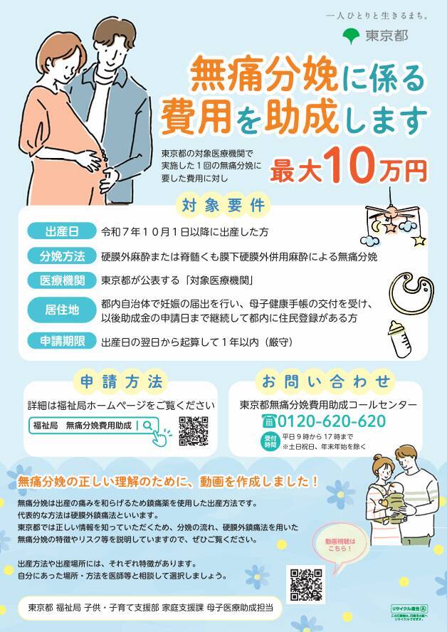 東京都が昨年度実施しました調査なんですけれども、出産した方の6割以上が次回の出産時には無痛分娩を希望しているということが分かりました。一方で、希望した方のうち約3割の方は費用が高いことなどを理由に断念しております。こうした状況を踏まえまして、東京都では希望する方が安心して無痛分娩を選択できるよう、その後押しをさせていただきたいということで、今回の助成費を始めております。希望する方が安心して無痛分娩を選択できるようにすることで、出産に対する多様なニーズに応えられる社会を実現していきたいというふうに考えております。