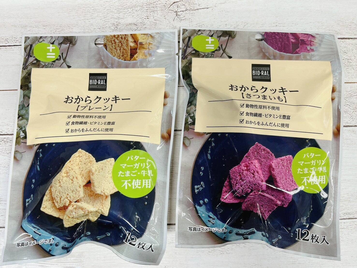 「ビオラル おからクッキー」プレーン、さつまいも、どちらも12枚入りで税込537円で購入。