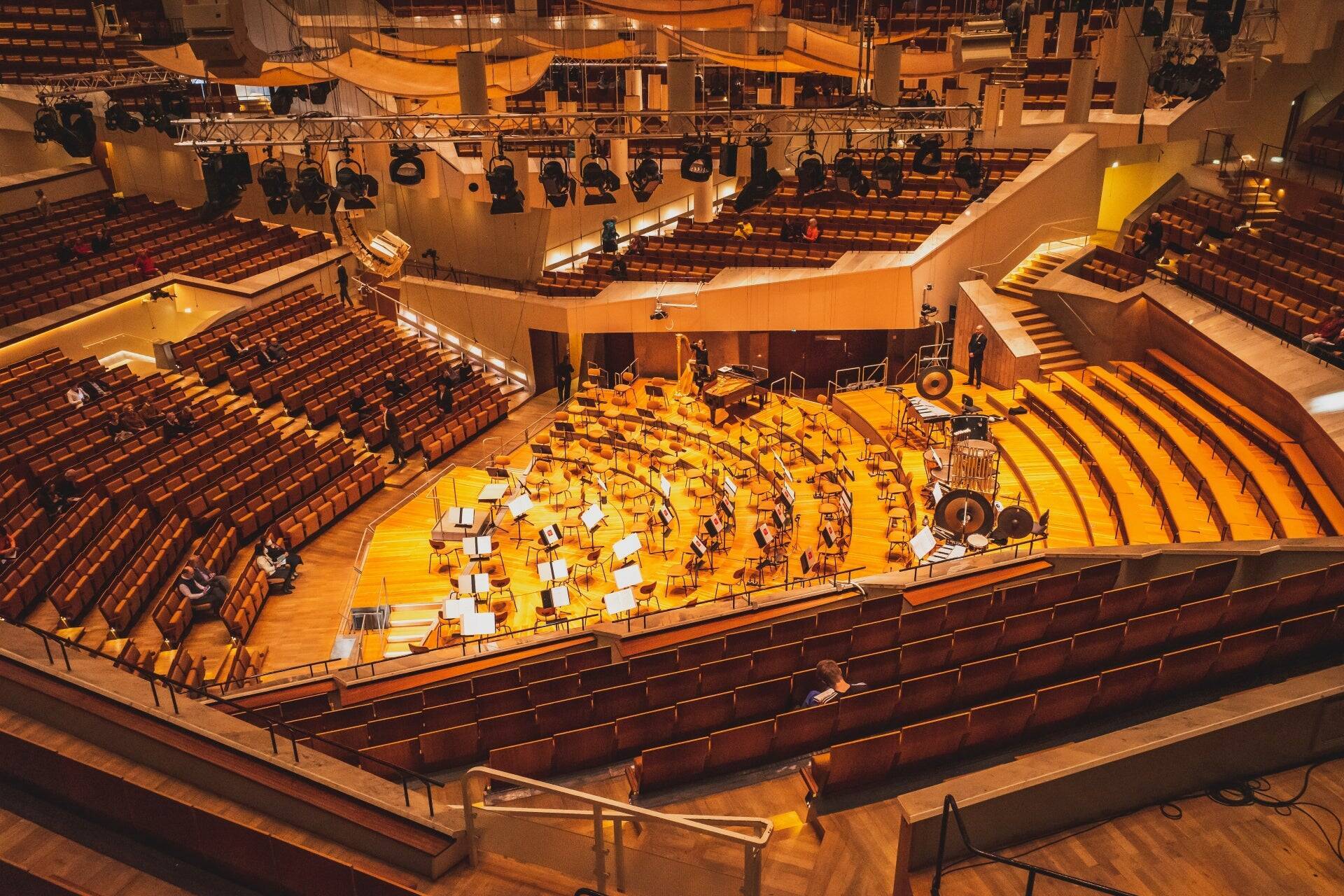 <イメージ(ベルリン・フィルハーモニーのホール)>「フライングブラボー問題」っていうことなんですけど。要するにコンサートホールで、オーケストラが、壮大な曲を美しく演奏するじゃないですけ。余韻を持って豊かに終わりますよね。そうすると当然残響もありますし、静寂に染み入るような音をみんなで味わいたいわけなんですけれども。