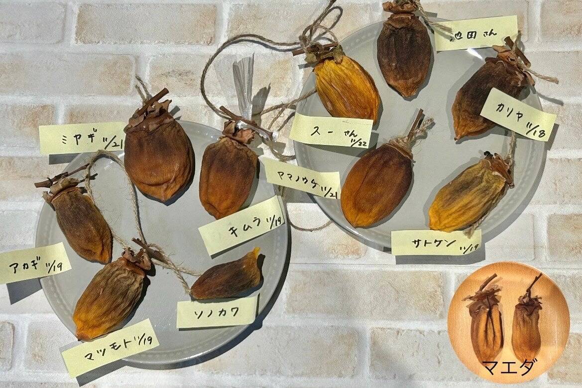 同じ柿を同じ時期に干したにもかかわらず、干し方によって全く違う表情の干し柿が完成しました。