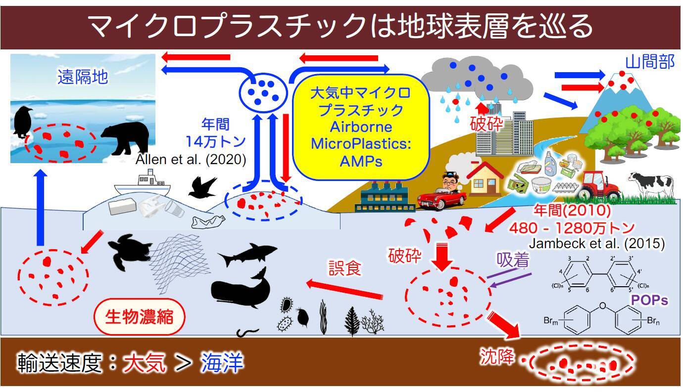 「フランスの研究者のグループが、いや、それだけじゃないですよ、と。小っちゃくなったやつが波しぶきと同じように空気中に巻き上がって、で陸の方にも運ばれていってるんですよ、ということが、今報告されてきまして、だからつまり、今まで海洋がプラスチックごみの終着点って言われてたんですけど、そうじゃなくて空気も通じで地球表層をぐるぐるぐるぐる回ってるんじゃないか、っていうことが今分かってきてます。