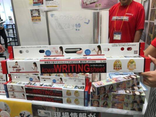 元々のビジネスシーンでの用途から発展して様々なところに使われているようです。社長曰く、今まで使われていた模造紙などはこの商品に置き換わるだろうとのことでした。
