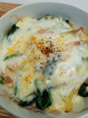 免疫力アップ!超簡単にできる「ほうれん草のグラタン」▼材料は・・・(2名分)