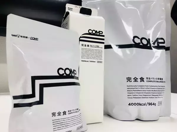 ★食事はグミでOKな「完全食」◆株式会社コンプ・代表取締役CEO 鈴木優太さん:「我々は「完全食」をコンセプトに食品を販売している。「完全食」とは、人に必要な必須栄養素を過不足なく補えて、極論、それだけで人は健康に生活できるというもの(赤ちゃんにとっての完全食は母乳)。粉状のタイプ、ドリンク状のタイプ、グミタイプの3種類。仕事が忙しくてなかなか自分で食事を工面できないような一人暮らしの人が、ユーザーさんに多いですね。」▼COMPシリーズ。左から、COMPグミ、COMPパウダー、COMPドリンク