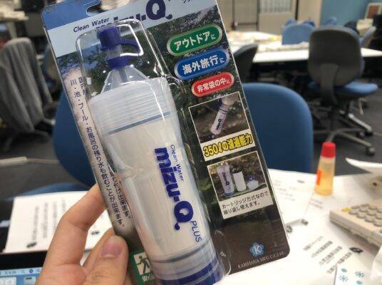 ★川の水が飲める!携帯型浄水器「mizu-Q PLUS」かりはな製作所・代表取締役 芟花忠彦さん「「mizu-Q PLUS」は、川やお風呂の細菌を濾過する携帯用の浄水器。誰でも簡単に使えて後部にペットボトルを付けて、押し出して水を濾過する。取り付けてすぐに押し出せれば細菌を取り除く。水道法の水道基準を第三者機関でテストし、完全に満たしている。完璧に飲める水になる。」▼「mizu-Q PLUS」