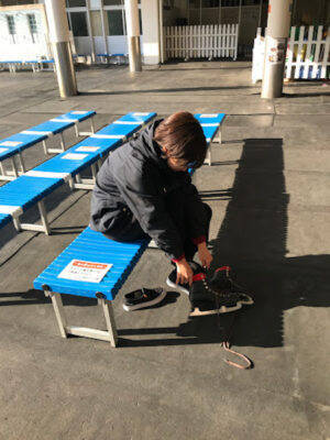 初のアイススケートにチャレンジした伊東楓アナウンサー。